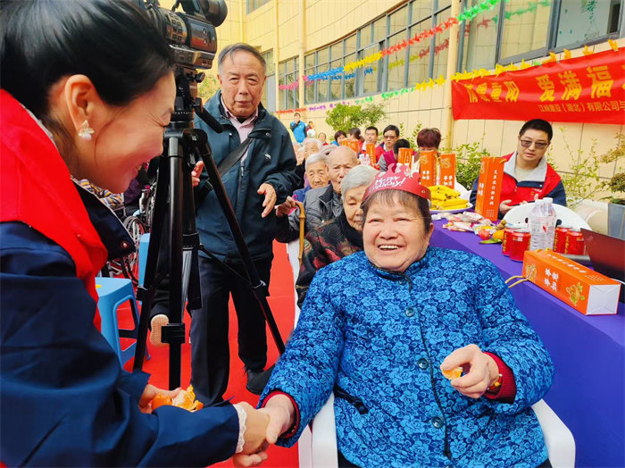 公司对此次敬老活动高度重视,进行了精心细致的筹备。活动组不仅为老人们准备了新鲜的水果、清甜爽口的饮品和品类丰富的副食,还特意为5位老人举办了一场温馨的集体生日仪式。一个硕大的生日蛋糕承载着满满的美好祝福,在这温情弥漫、暖意融融的时刻,幸福与快乐在每一个人之间传递共享。老人们脸上绽放出灿烂的笑容,那笑容真切地展现出他们内心的温暖与动容。